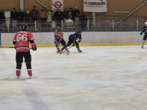 Der 4:1 Vorsprung entsprach aber keineswegs dem Spiel, eine sichere Führung der Breakers, jedoch war das Spiel auf Augenhöhe. Das Ergebnis vom ersten Drittel stammt viel mehr aus der besseren Chancenverwertung der Breakers.